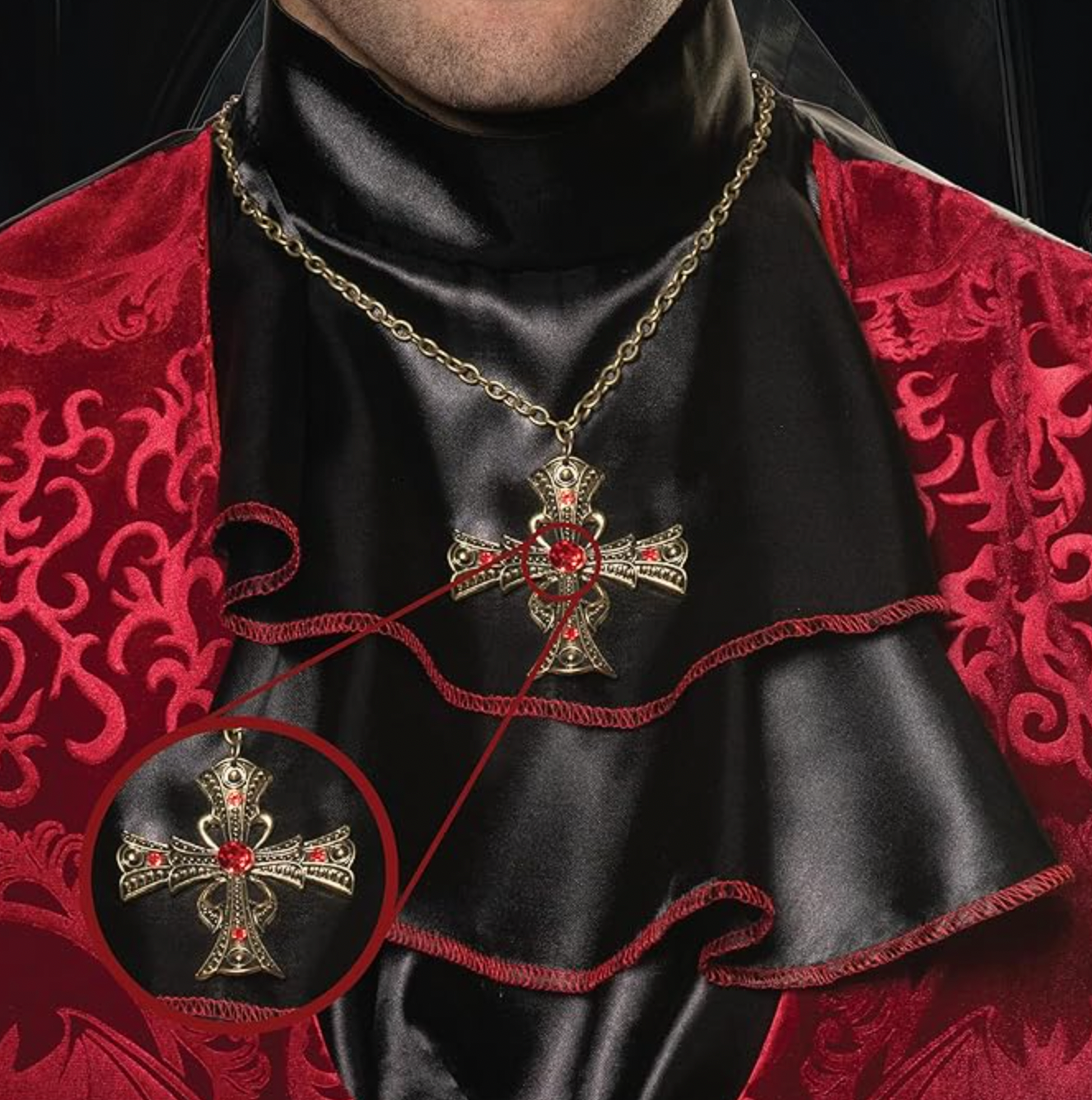 Add a touch of Dracula's Reign to your Halloween Masquerade with this gothic Vampire Cross Medallion. Great addition to your Vampire, Renaissance, SteamPunk Costume for any event!