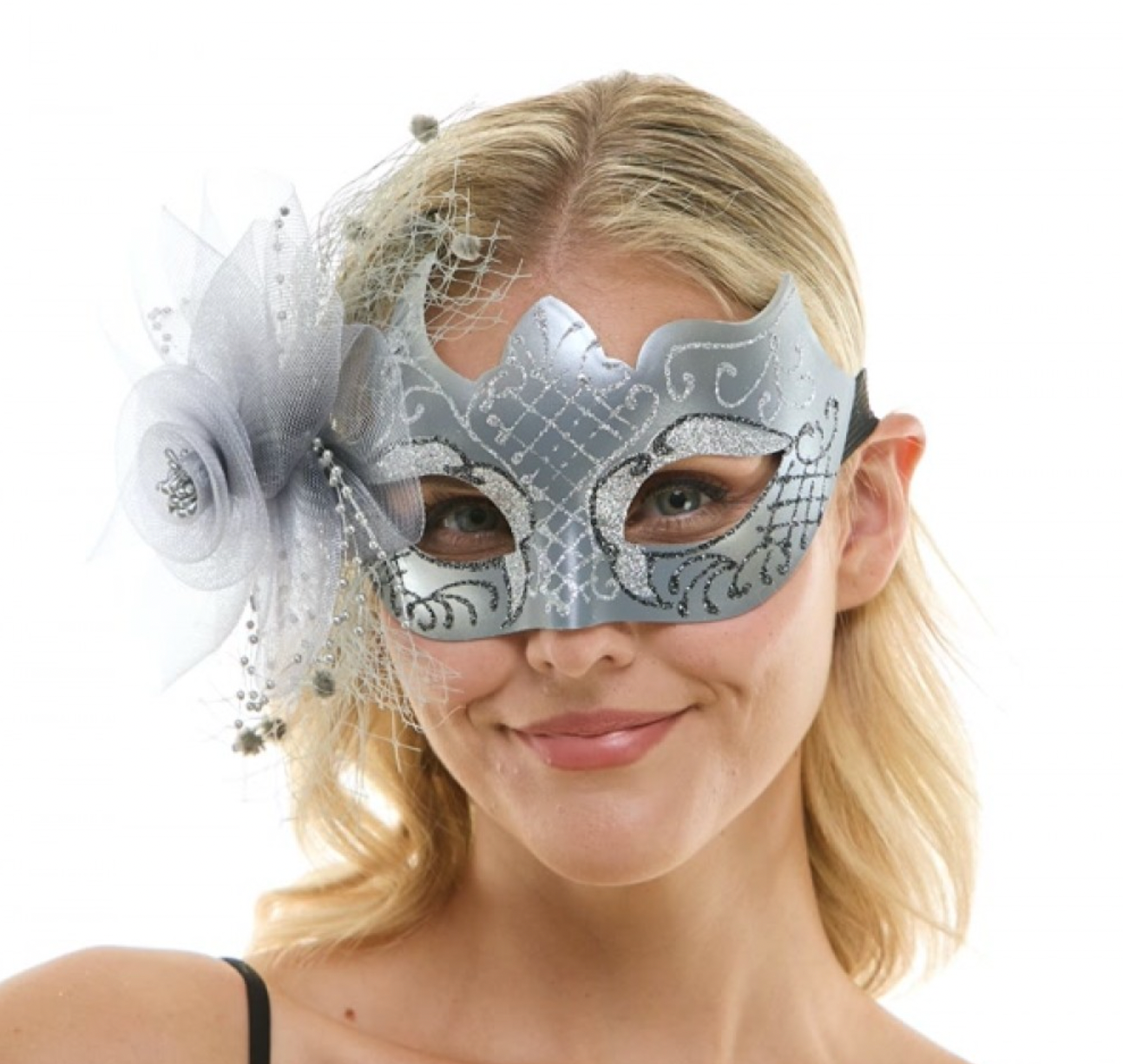 Get ready to add a touch of mystery and elegance to your outfit with our Martina Veil Fascinator Mask! This stunning mask features a glittery crosshatch design with a large rose-shaped veil accent, adding a unique and feminine touch to the traditional Venetian design. Perfect for parties, masquerades, or any special occasion.