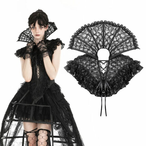 Elevate your gothic wardrobe with the Victorian Black Lace Stand Up Collar. This intricately designed accessory adds an air of dark elegance, perfect for embodying the mysterious allure of an evil queen. Its delicate lace and striking silhouette make it ideal for costume events or everyday gothic fashion, transforming any outfit into a commanding statement of style and sophistication.