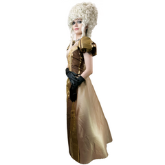 Time to hit the ballroom in style with this Victorian Olive Green Women's Adult Costume. With its simple yet elegant light green gown and a ruffle-lined top, it's a sure pick for your next ballroom party. Available in a size medium for rent or purchase. Wig and jewelry sold separately.