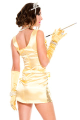 Bring Old Hollywood back to life in this sensationally sparkly Vintage Glam Hottie Costume! Covered all over in eye-catching gold sequins, this mesmerizing three piece set will have you looking like retro royalty at any costume party!