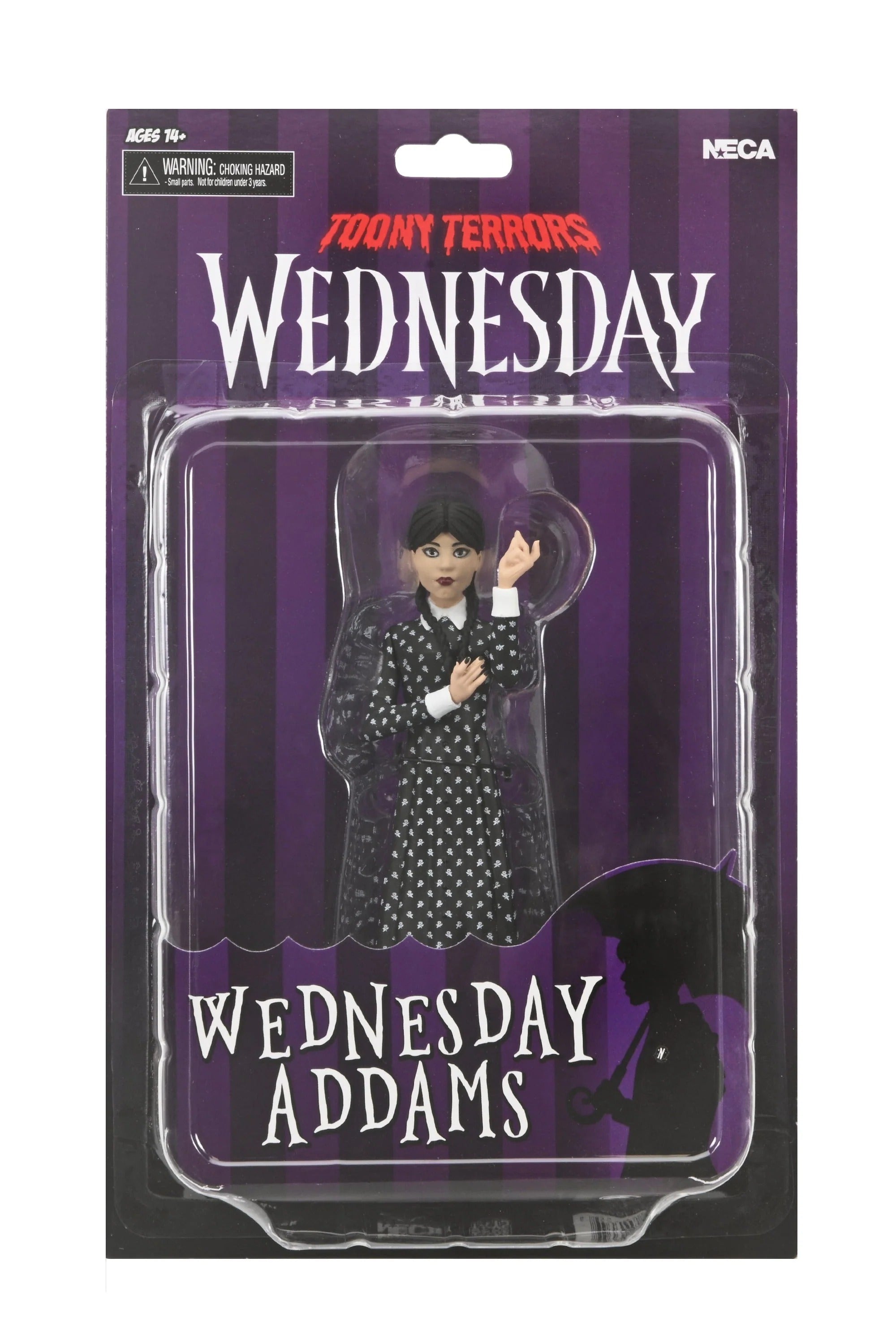 Meet the perfectly macabre collectible: Toony Terrors' 6-inch Wednesday Addams figure. This stylized vinyl collectible captures Wednesday's iconic deadpan expression and gothic aesthetic with meticulous detail. Featuring premium articulation and authentic character design, it's an essential addition for fans of the Addams family and collectors of horror-inspired pop culture memorabilia. Display-ready and built to last, this figure brings Wednesday's dark charm to any collection.