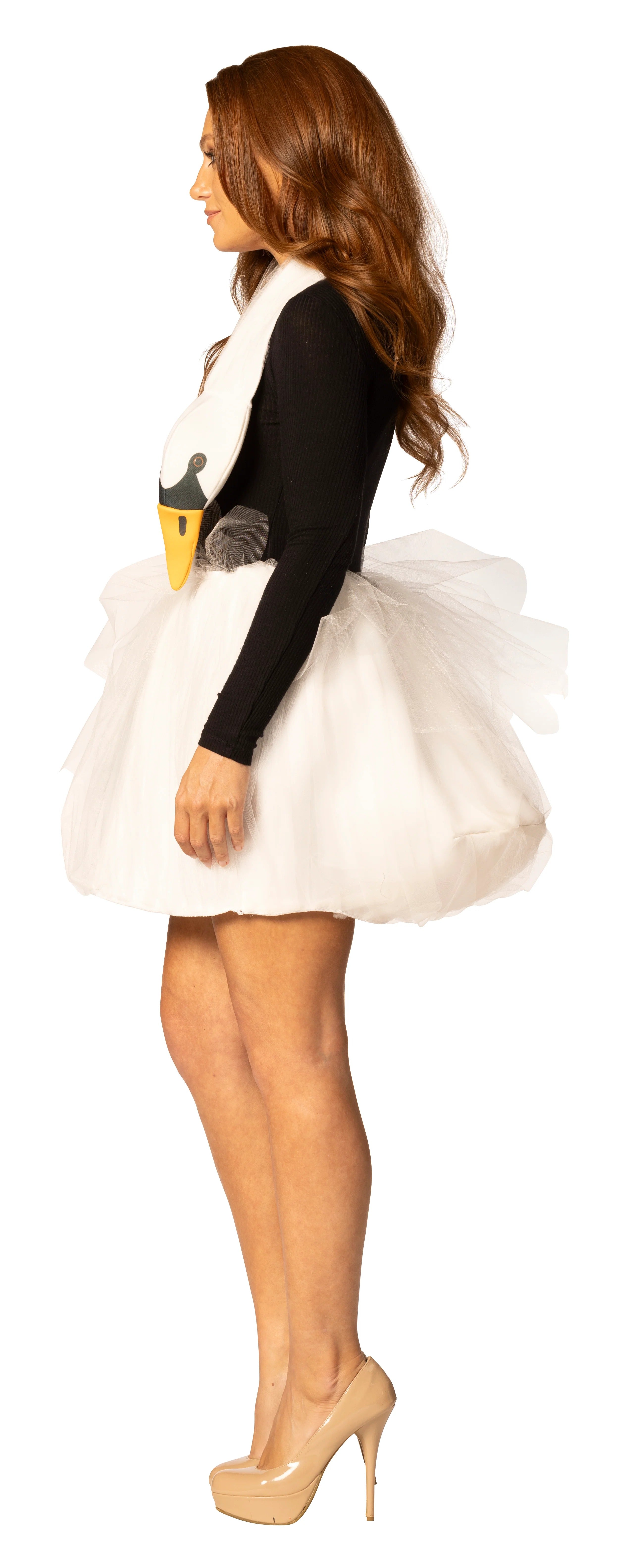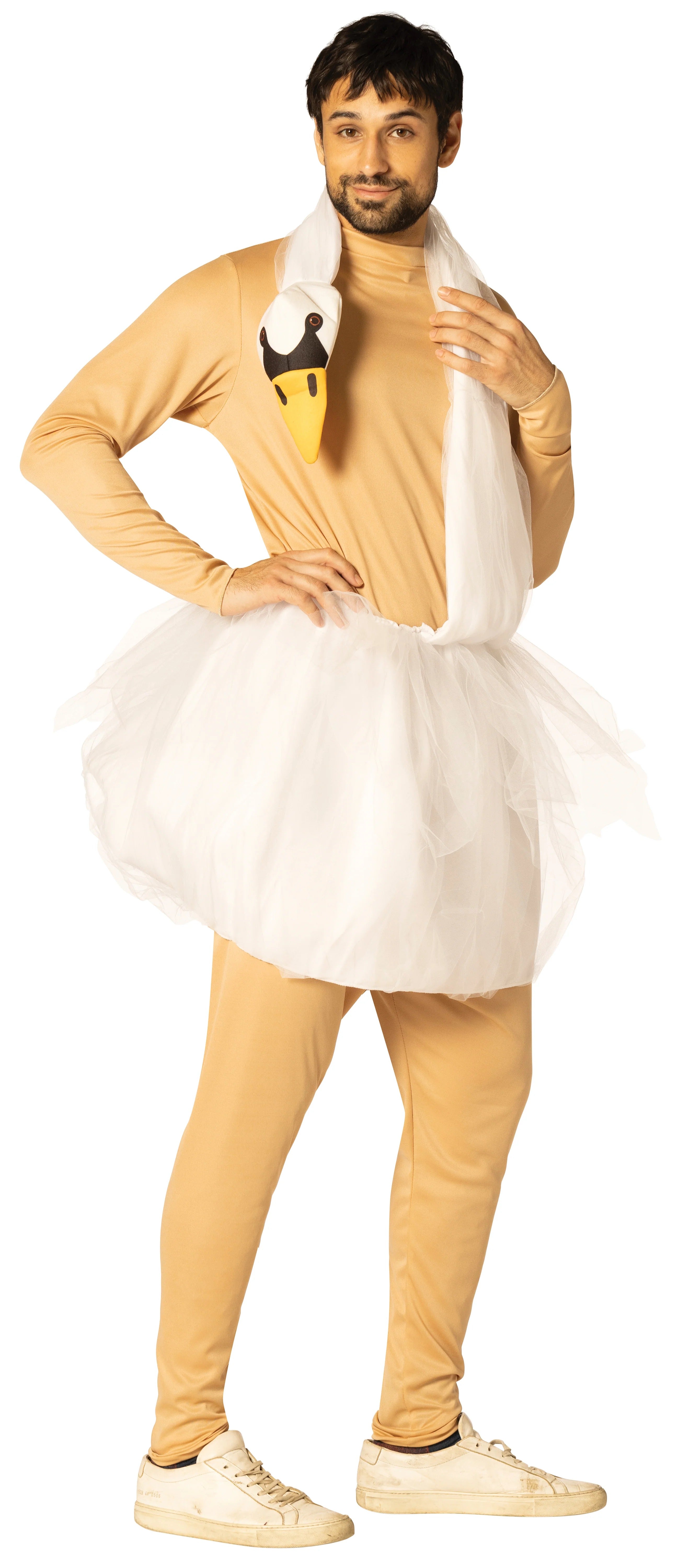 This White Swan Costume includes a foam and tulle skirt with an elasticized waist to flutter through your day with comfort and confidence! Featuring a long 3D foam and tulle wrap around neck finishing with a foam head & swan printed graphics. Does not include shirt or pants.