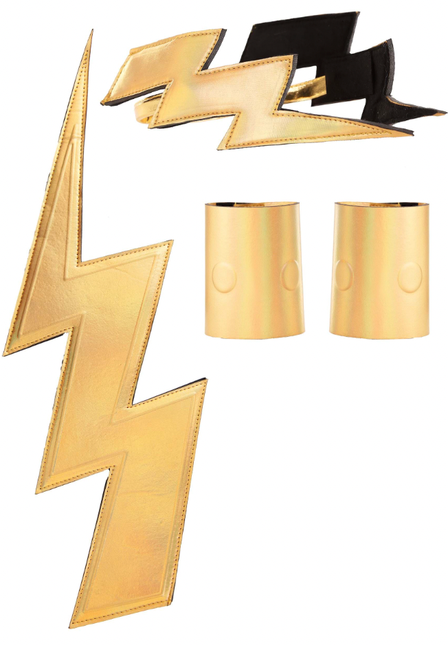 Dress up like the almighty Zeus this Halloween with this rad costume kit! You'll look like the king of Olympus with the included gold lighting headband, lightning bolt and wrist accessories. Thunder and lightning never looked so good!